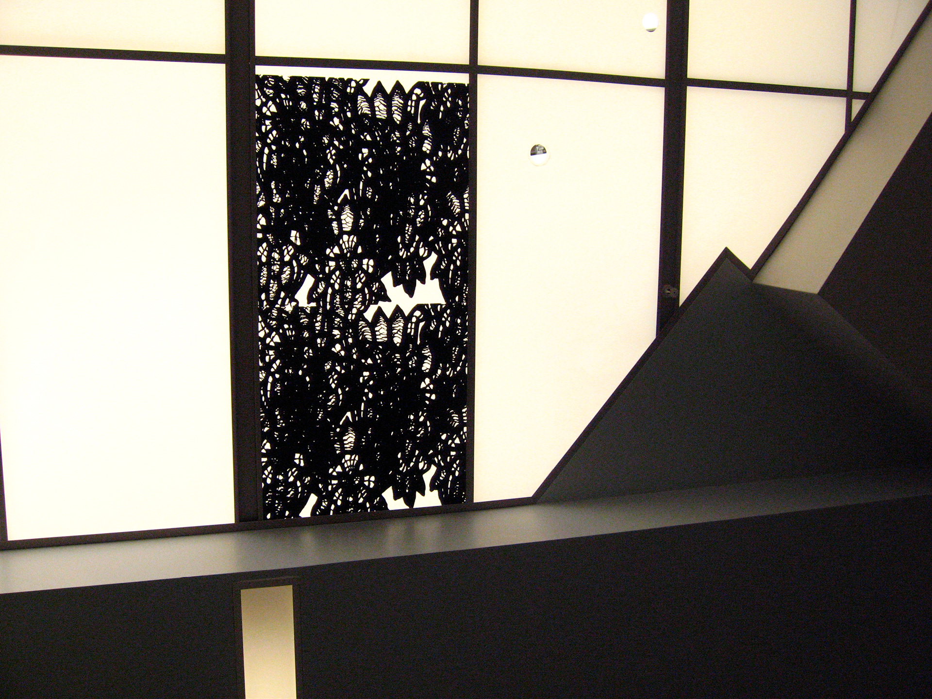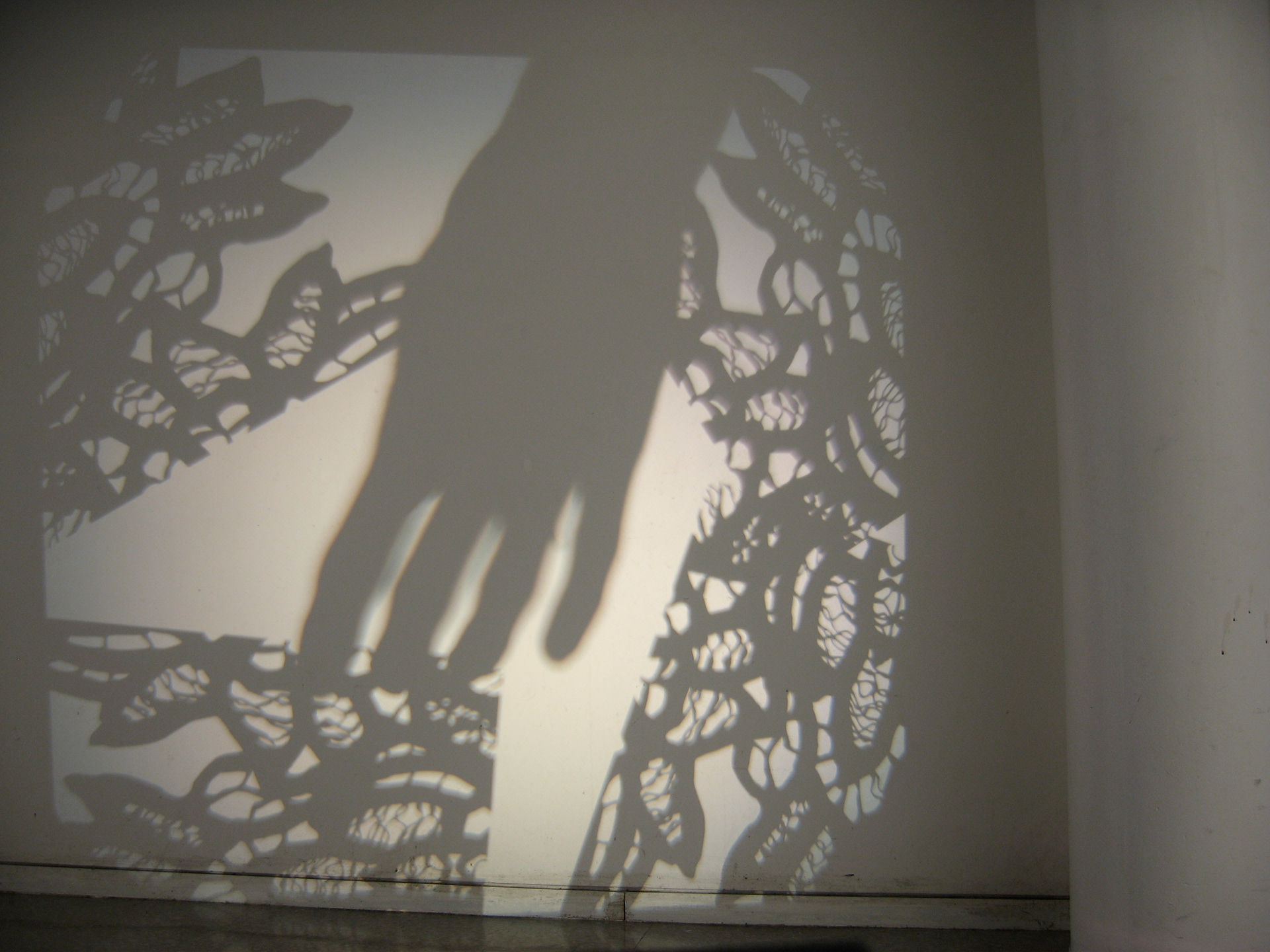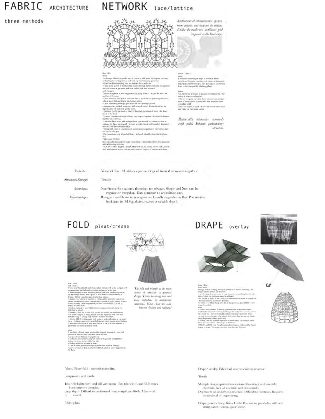L A C E H O U S E The Changing Room attempts to subvert spatial and material dualisms. Public/private, inside/outside, masculine/feminine, and hard/soft are normally viewed in opposition. This thesis aims to use the constraint of dichotomy as a source for invention. Fabric, explored as structure, blurs the edges of dualist assumptions. This hybrid space is at once hard and soft, public and private, blurring and merging gender and material boundaries. T H E C H A N G I N G R O O M Projected fabric swatches illuminate various fabric casts- hard pillows, cellulite surfaces and lace bricks. The installation acts as an exhibition, revealing, masking and concealing gender space issues. WA L L P A P E R Experimental lace cut work installation in DAAP, Design, Art, Architecture and Planning wall. Fabric, paper, rubber, and sound board laser cut and assembled with different repetitions. Interactive light wallpaper.
